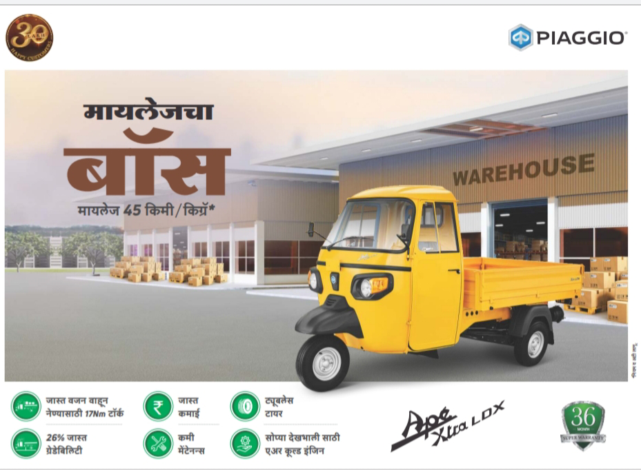 There wheeler Ape showroom at our Eros Motors Pvt Ltd authorised dealer of Piaggio Vehicle Pvt Ltd. Add - Cotton market Sq. to Mokshadham road, Near Hyundai Dealership Ghat Road, Nagpur- 440018. Contact no - 9371444026