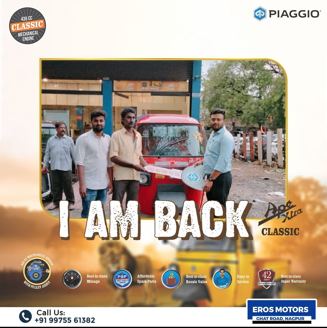 Three Wheeler showroom at our Eros Motors Pvt Ltd authorised dealer of Piaggio Vehicle Pvt Ltd. Add - Cotton market Sq. to Mokshadham road, Near Hyundai Dealership Ghat Road Nagpur - 440018. Contact no - 9371444026.