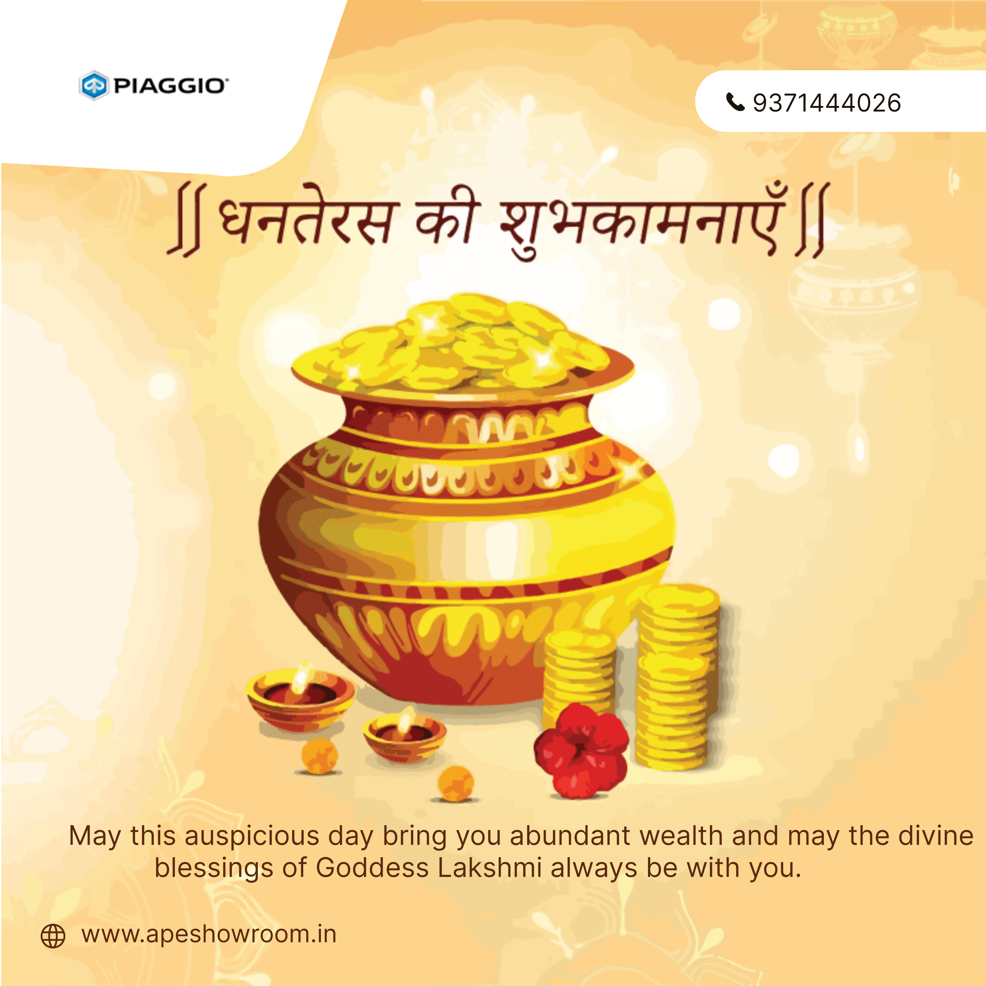 Three Wheeler showroom at our Eros Motors Pvt Ltd authorised dealer of Piaggio Vehicle Pvt Ltd. Add- Cotton market Sq. to Mokshadham road, Near Hyundai Dealership Ghat Road, Nagpur -440018. Contact no - 9371444026. 🌙 "May this Dhanteras bring success to all your ventures and fill your life with eternal bliss. 🪔✨ Let’s light the way to prosperity! 💛 #HappyDhanteras #FestiveVibes #ProsperityAndWealth #GoldenTimes #DhanterasWishes